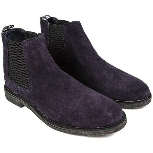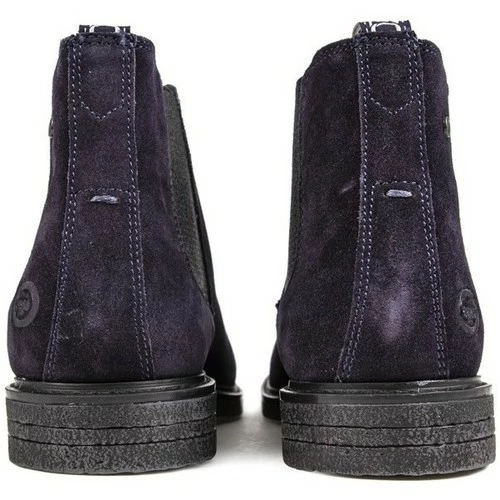 Bottines Chelsea Base London Gordon en daim bleu marine à enfiler, avec soufflets élastiques tissés noirs et languette de talon en textile de la marque. Ces bottes à bout rond de qualité supérieure sont dotées d’une chaussette et d’une doublure en cuir de marque, de surpiqûres ton sur ton, d’un marquage en relief et d’une semelle synthétique mouchetée noire.